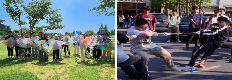 (左图为“青春作伴,放飞‘心’房”心理活动现场,右图为“‘拔’出精彩,‘河’力拼搏”活动现场)