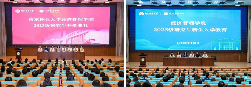 (左图为2023级研究生开学典礼现场,右图为2023级研究生新生入学教育现场)