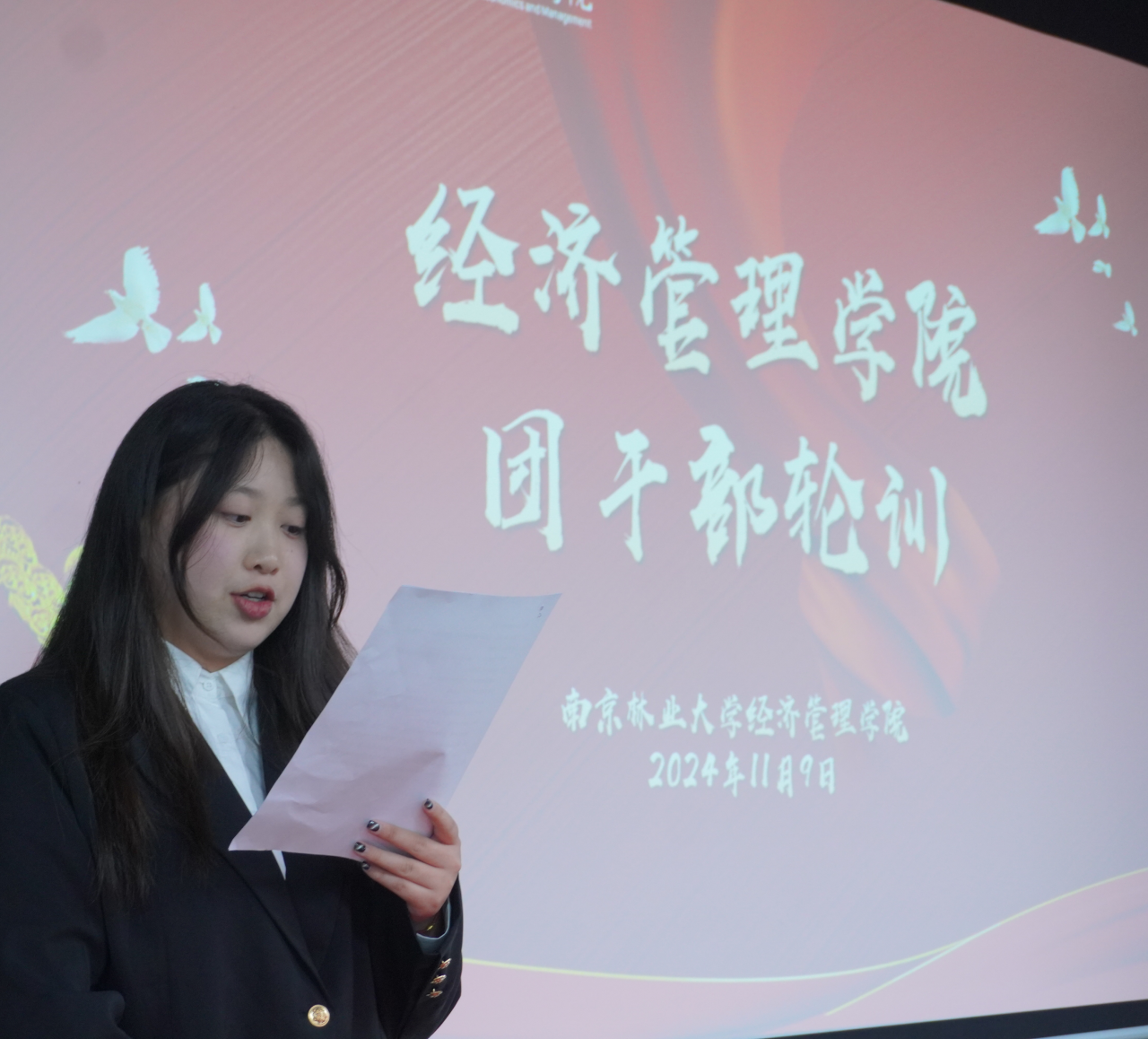 为进一步加强基层团组织规范化建设,帮助新任团支书熟悉工作内容,我院于2024年11月9日在白马校区3311教室举办2024-2025学年度团干部轮训活动。本次活动由经济管理学院学生会组织部、学习实践部主办,学院全体2024级团支部书记参与。