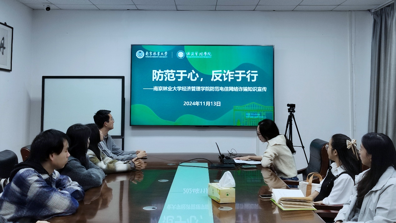 11月13日,学院在文科楼C248举办了以“防范于心,反诈于行”为主题的防范电信网络诈骗教育讲座。本次讲座由研究生辅导员谢冰清老师主持,刘思静老师主讲,2023级、2024级研究生班委参与讲座。