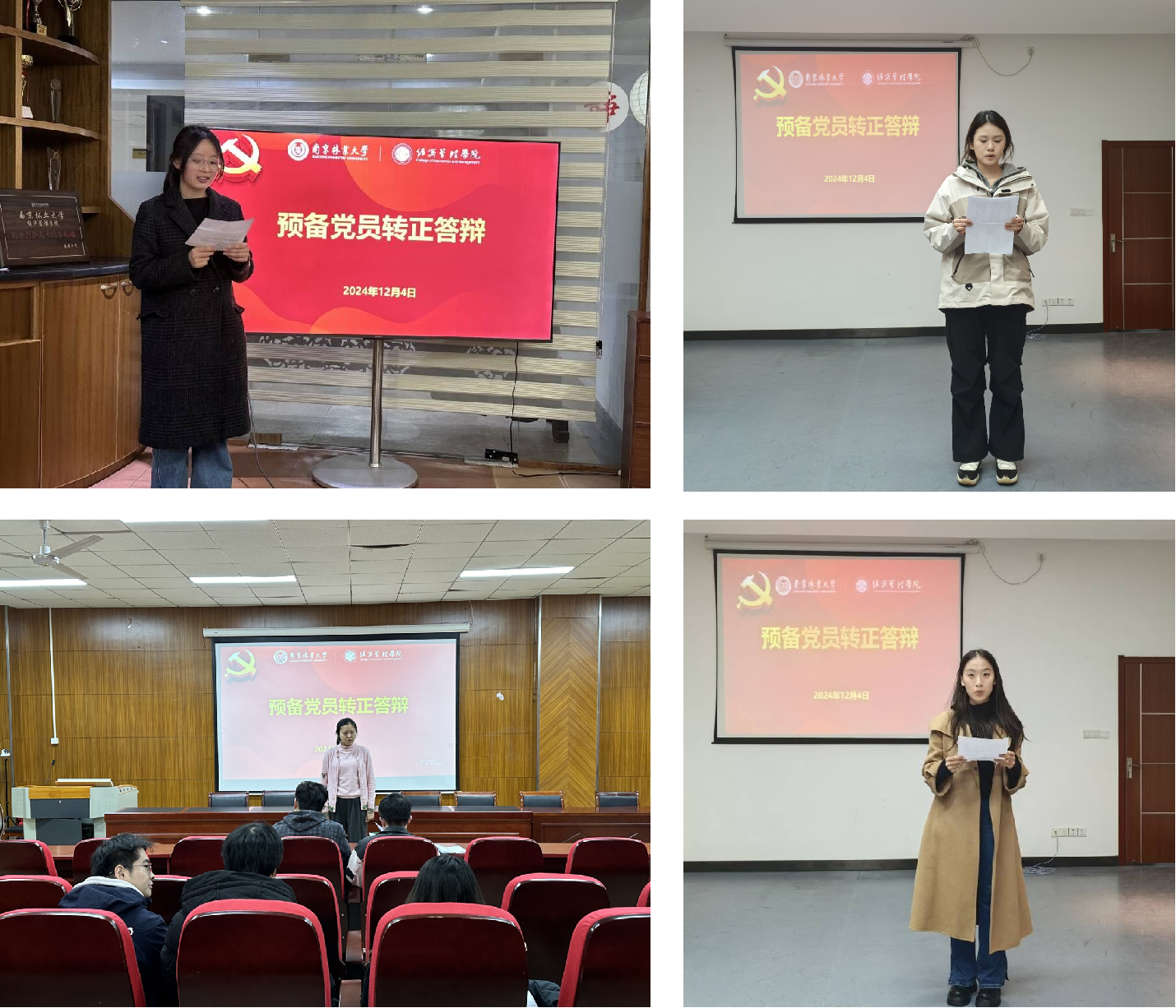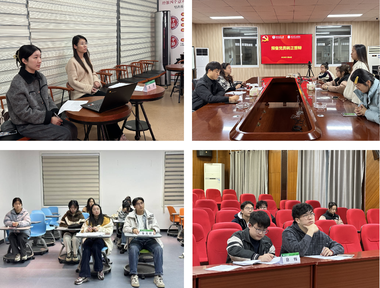 12月4日下午,经济管理学院预备党员转正答辩采取线上线下相结合的方式,在文科楼C208、C105等会议室顺利举行。