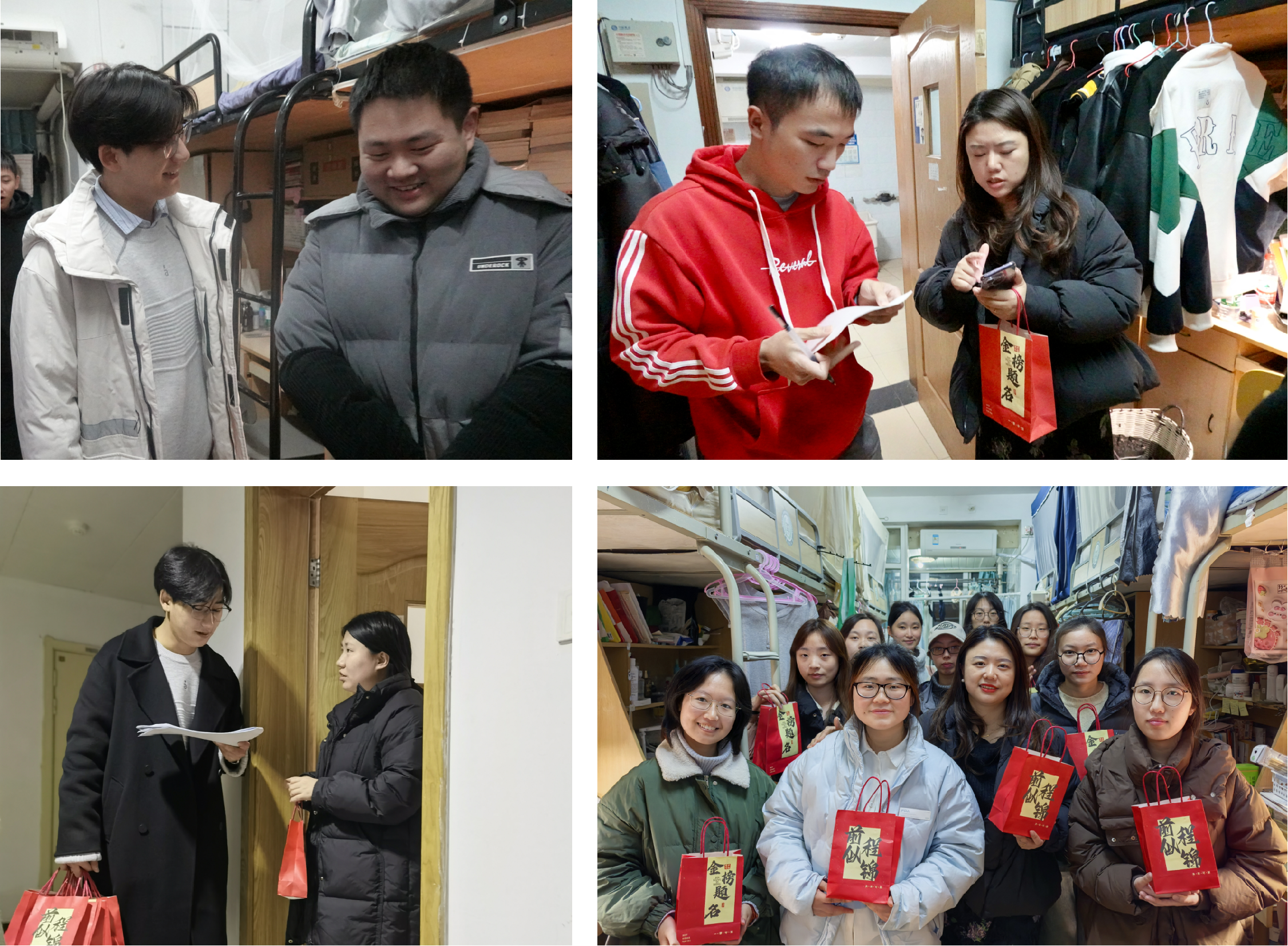 12月3日—6日,学院2021级本科生辅导员赵淑颖、秦义轩深入宿舍一线,于六栋、八栋、十三栋和十九栋共178间宿舍开展了“‘经’候佳音,温暖同行”——毕业年级润心育人活动,向所有即将踏上考场和就业征程的学子们传递一份鼓励与支持。