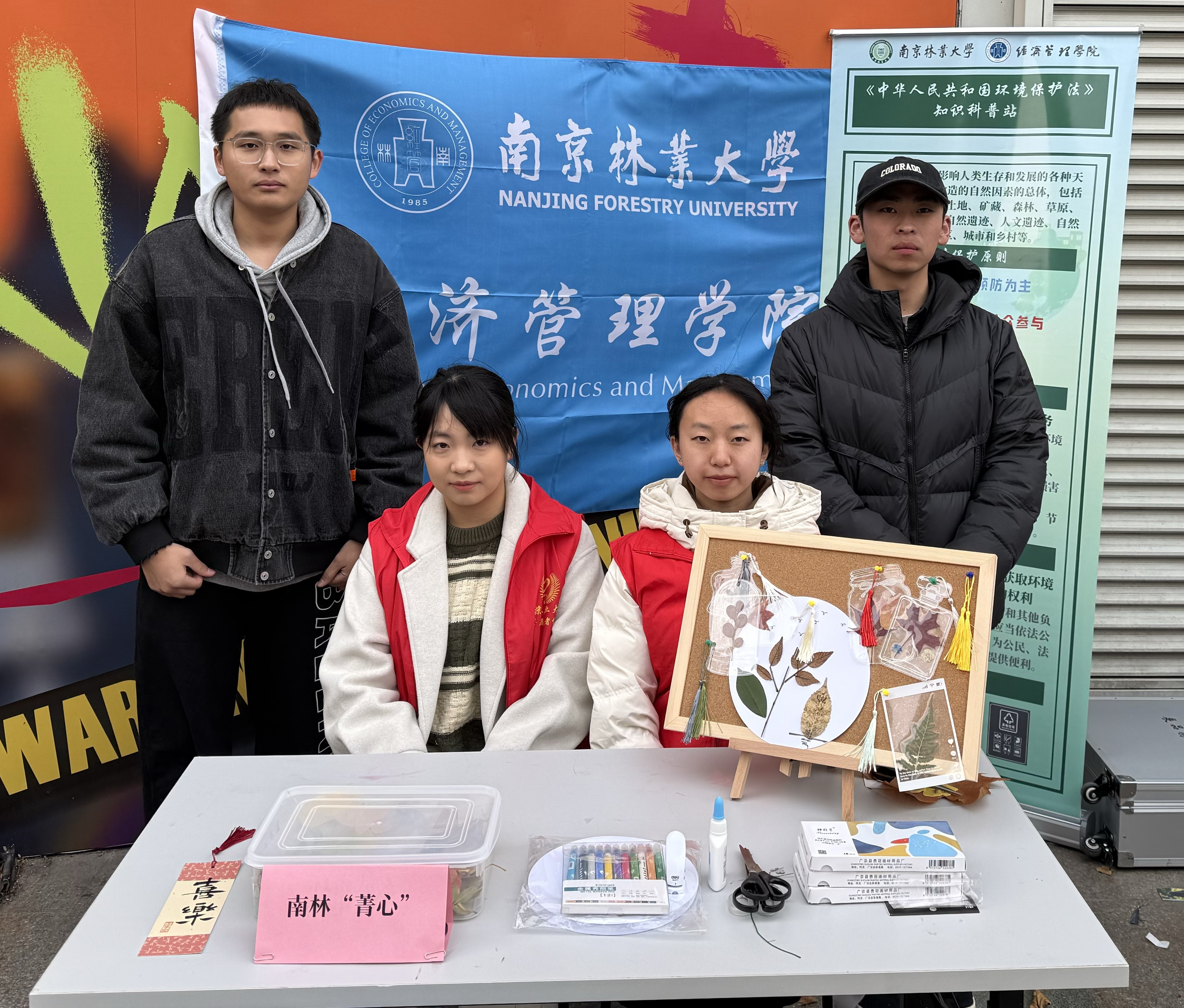 今年12月5日是第11个“世界土壤日”,也是第39个“国际志愿者日”。经济管理学院“菁心”志愿服务队积极响应号召,精心设计环节,于12月7日参加了由南京团市委和南京市青年志愿者协会联合主办,玄武团区委和玄武区青年志愿者协会共同承办的“青春建功新时代·七彩志愿社区行”活动,开展“拾叶存忆·‘签’手环保”志愿服务,旨在通过创意手工和知识科普提高公众的环保意识,推广绿色发展理念,弘扬新时代文明新风。