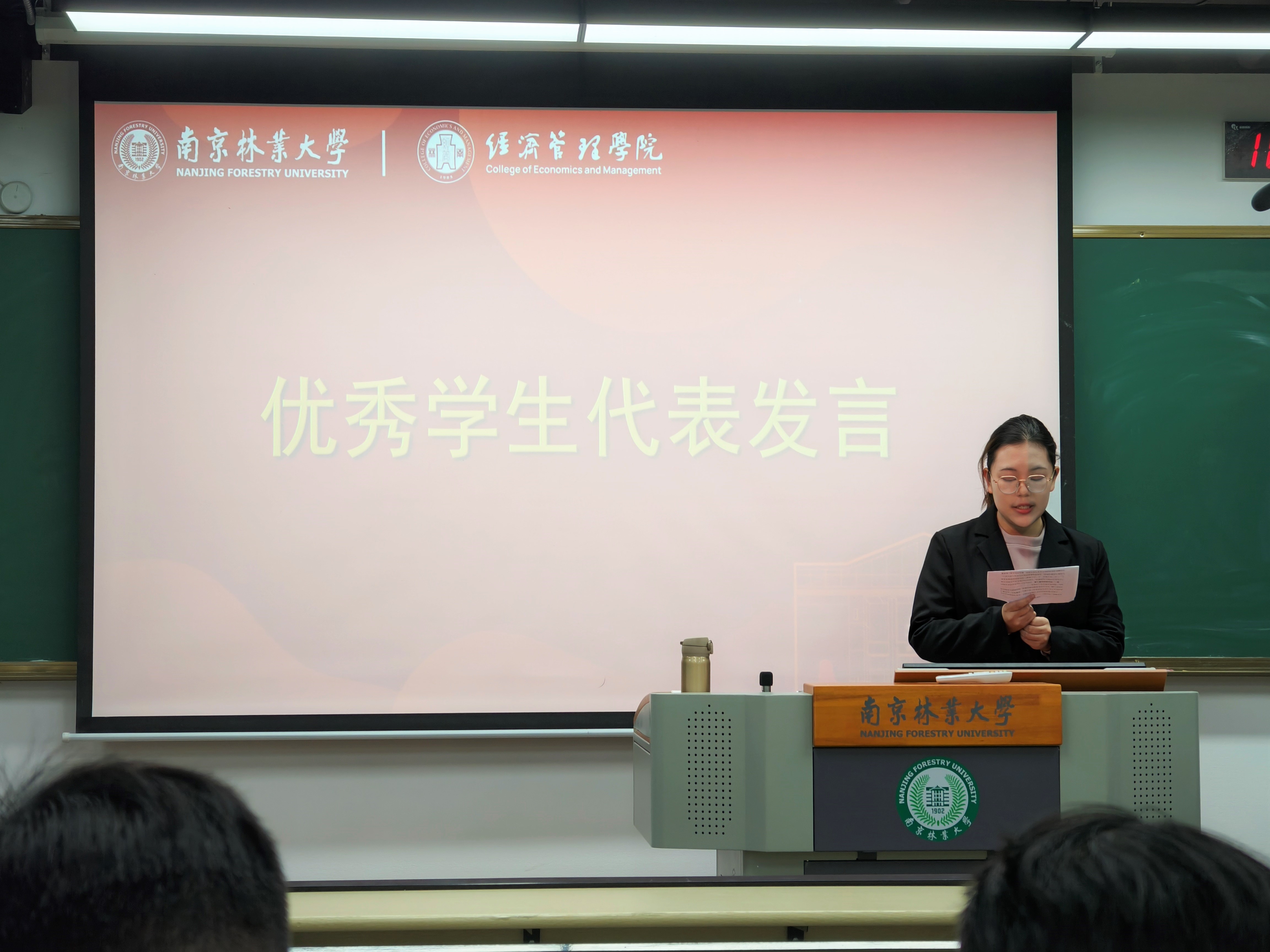 李雨洋同学作为优秀学员代表发言。她结合自身经历,从南林精神积蓄力量,思政教育坚定信念,实践锻炼提升能力三个方面分享了自己加入水杉班后的心得与收获。最后,李雨洋同学发出争做有为青年的号召,希望同学们站在新时代、新起点,踏时代之浪,扬进取之帆,用智慧与汗水书写属于自己的青春绚丽华章。