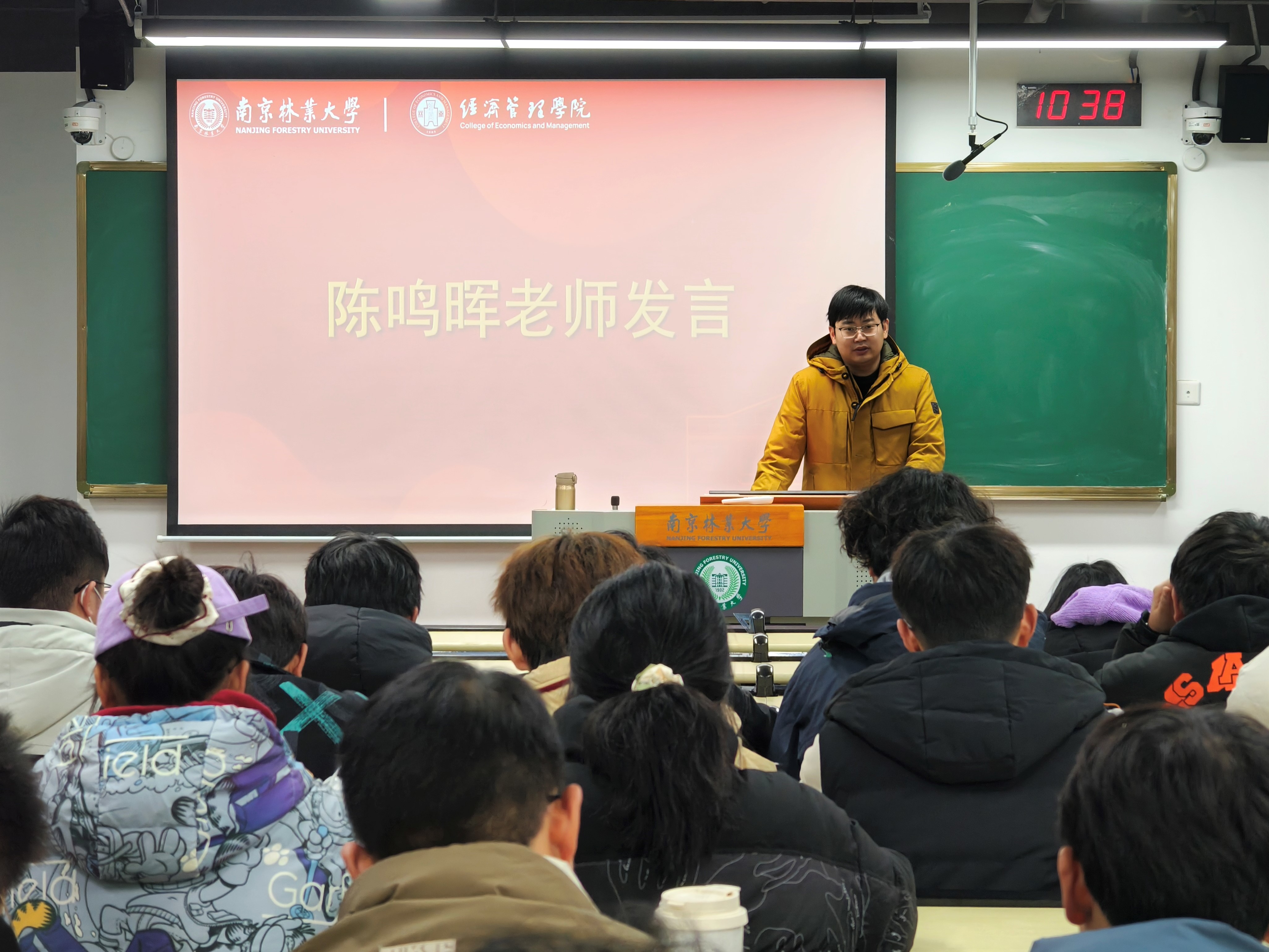 活动伊始,陈鸣晖老师进行发言。他详细阐述了水杉班的发展历程,着重指出学员在学习理论知识之余,提升言语表达、判断及思考能力的重要性。同时,他积极倡导学员们深入了解国家相关政策法规和学校规章制度,紧密向党组织靠拢,立志成为脚踏实地、勇于担当的新时代青年,传承与弘扬南林精神,勇逐梦想,践行使命。