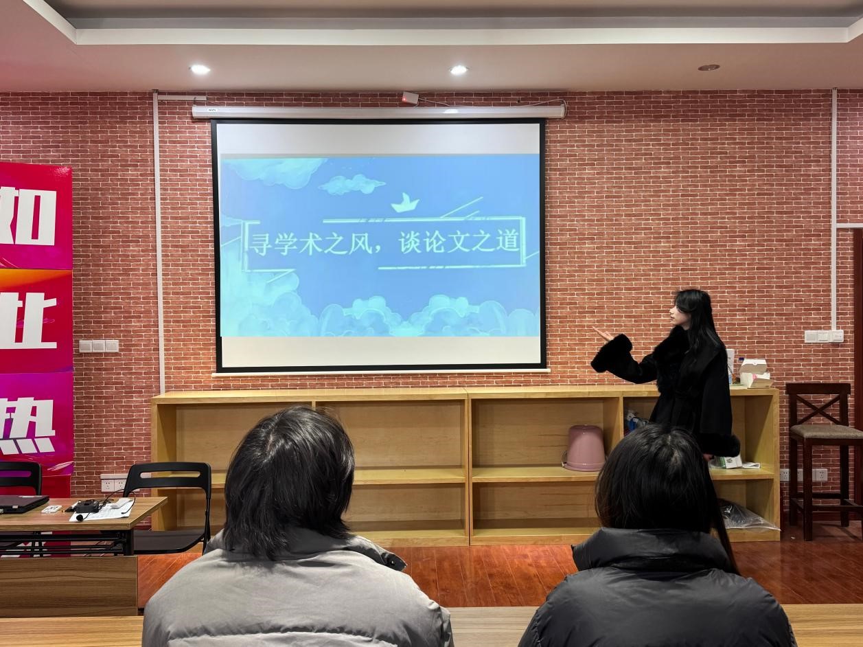 12月18日,学院在文科楼B142活动室开展了以“寻学术之风,谈论文之道”为主题的学术道德与学术诚信活动。本次活动以学术沙龙的形式展开,23级会计班班长禹钱馨担任主讲人。