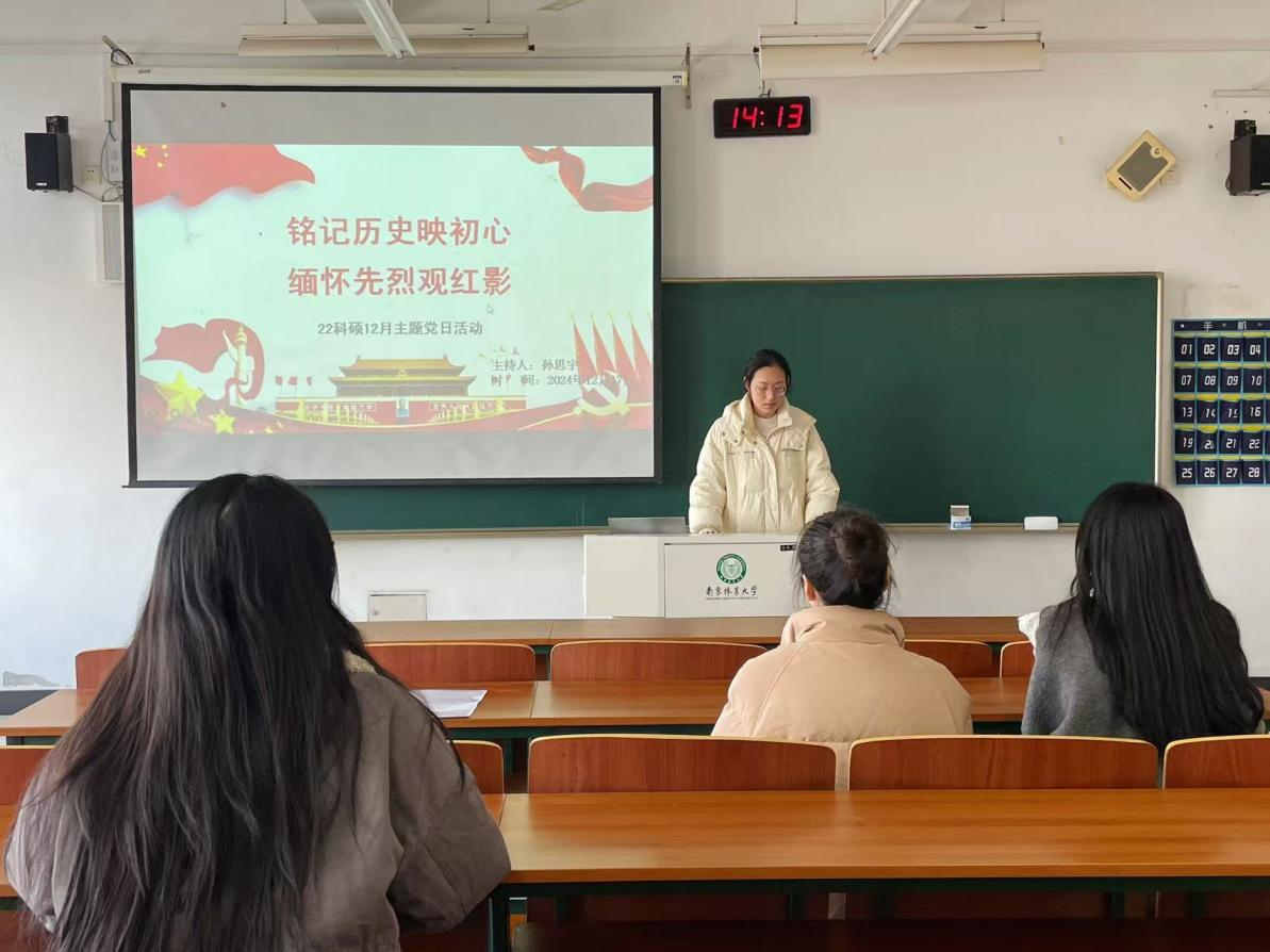 为深入学习贯彻党的二十届三中全会精神,缅怀革命先烈、传承红色基因,弘扬爱国主义精神,增强党员的党性修养和民族认同感。2024年12月17日,南京林业大学经济管理学院22级科硕党支部开展“铭记历史映初心 缅怀先烈观红影”主题党日活动。