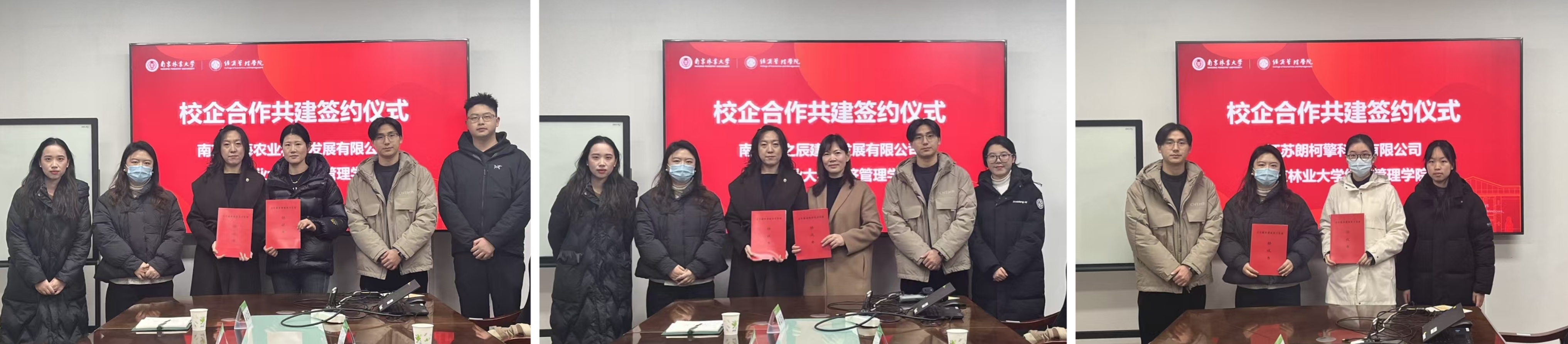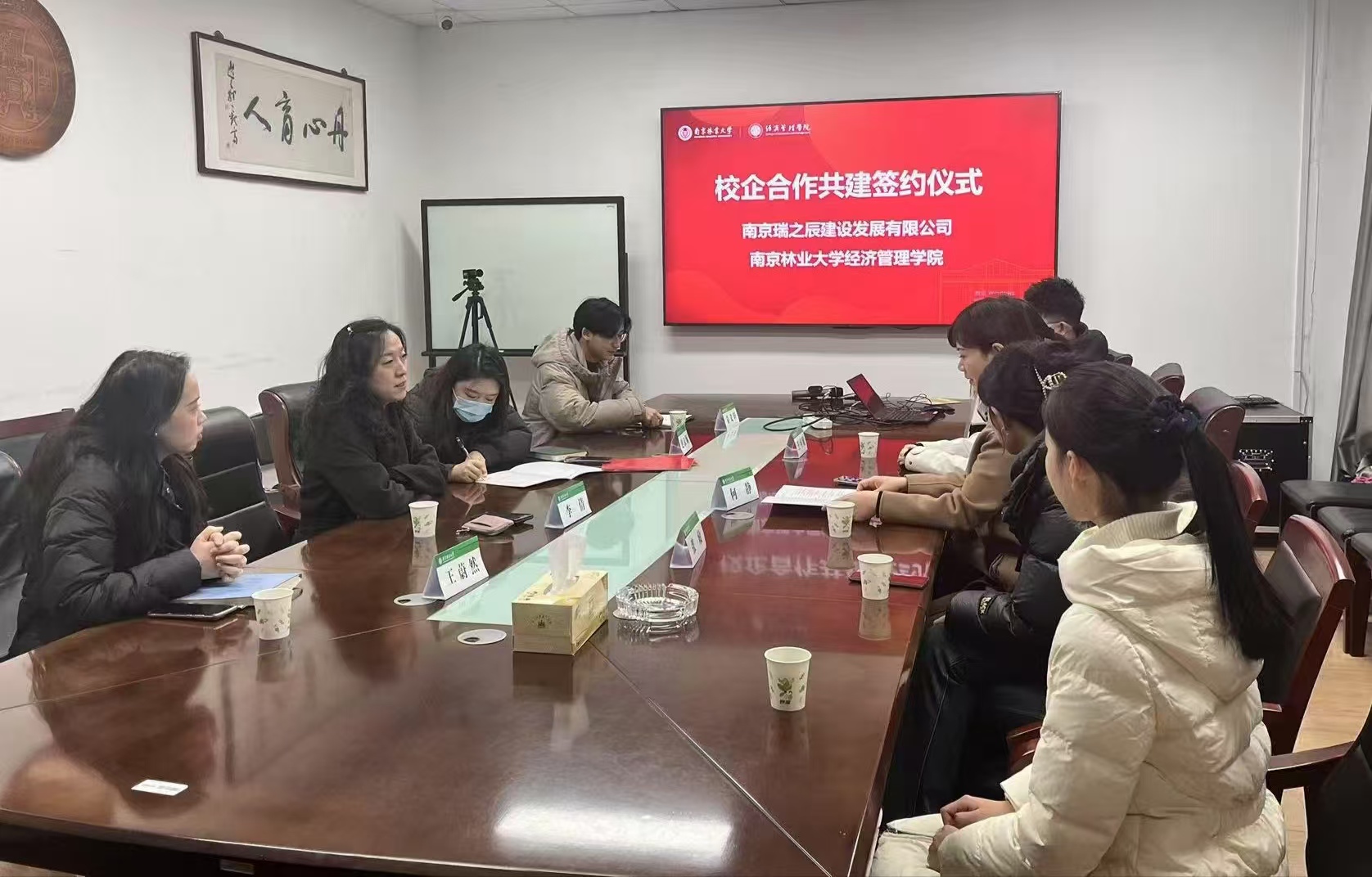1月10日上午,南京林业大学经济管理学院与江苏朗柯擎科技有限公司、南京国海农业科技发展有限公司、南京瑞之辰建设发展有限公司三家企业举行座谈交流并签订校企合作共建实践基地协议。三家企业代表,学院党委副书记、副院长李倩,团委书记、学工办主任赵淑颖、辅导员王蔚然和秦义轩共同出席本次活动。