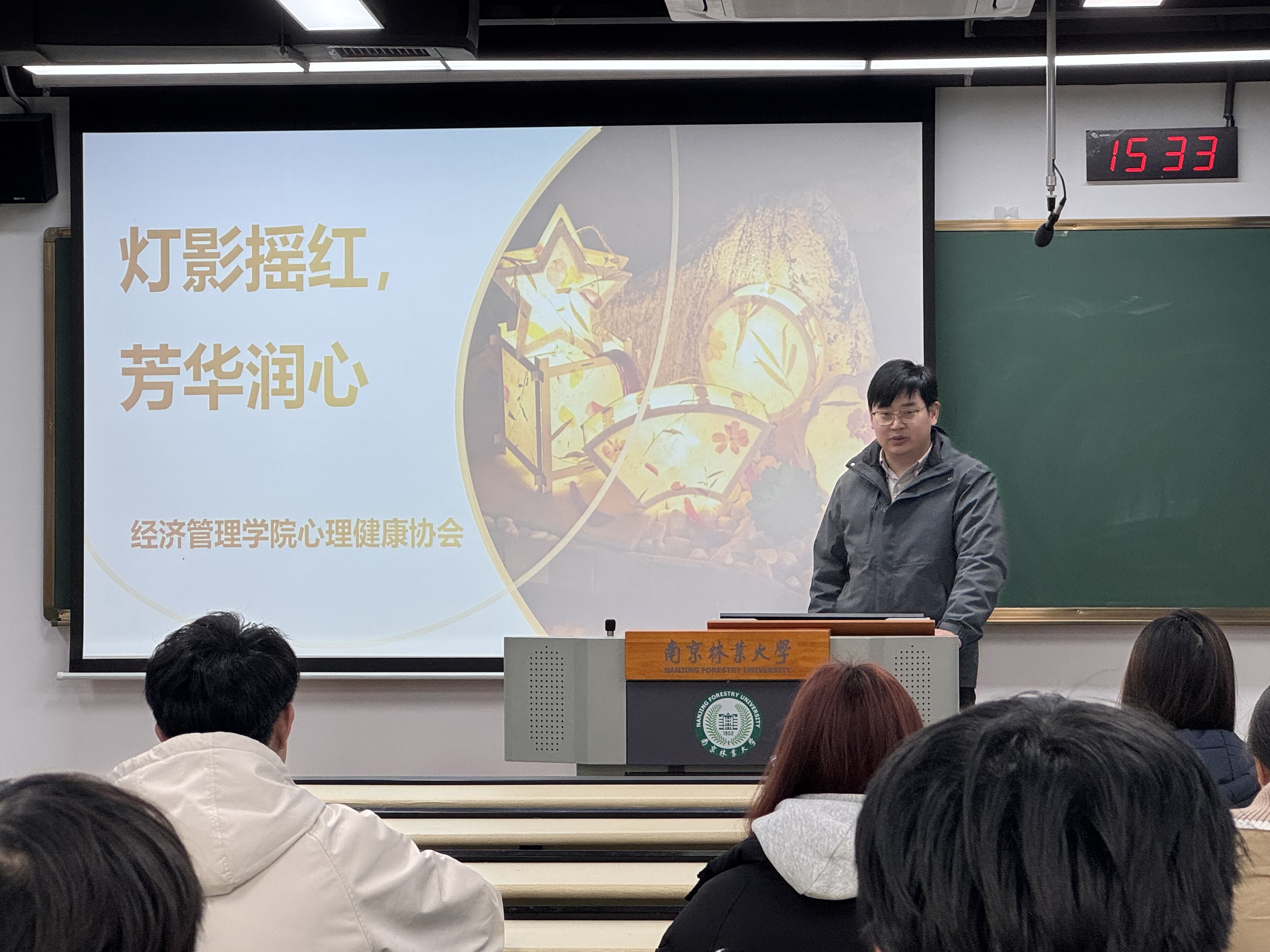 在传统元宵佳节余韵未散之际,经济管理学院心理健康协会于2月26日在白马校区3413教室举办“灯影摇红,芳华润心”花草纸灯DIY活动。本次活动巧妙融合传统手工艺制作与心理疗愈元素,通过沉浸式体验为经管学子开启新学期心灵成长之旅。学院2024级本科生辅导员陈鸣晖出席活动。