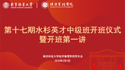 为进一步加强对学生干部的思想引领,全面提升学生骨干的综合能力,3月5日,南京林业大学经济管理学院水杉英才中级班开班仪式暨开班第一讲在白马校区4331教室举行。白马校区党政办主任洪春奇、经济管理学院24级辅导员陈鸣晖出席本次活动。
