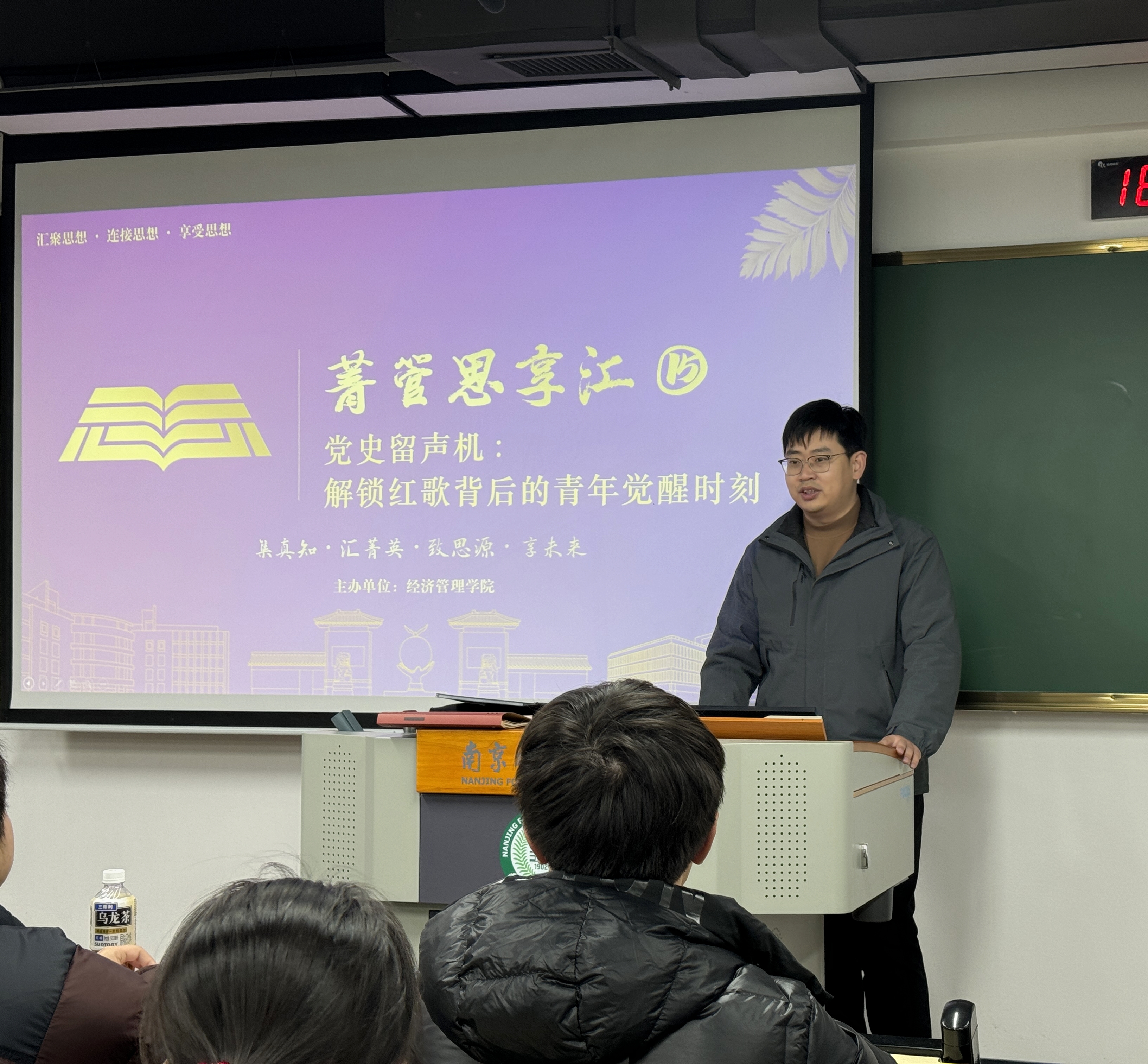 洪春奇老师依托其音乐专业背景,将红歌与党史结合,深挖红歌背后的故事,开创了“洪老师讲红歌”的品牌课堂,本次讲座中她以“党史留声机:解读红歌背后的青年觉醒时刻”为主题,为同学们带来了一堂别开生面的美育课。