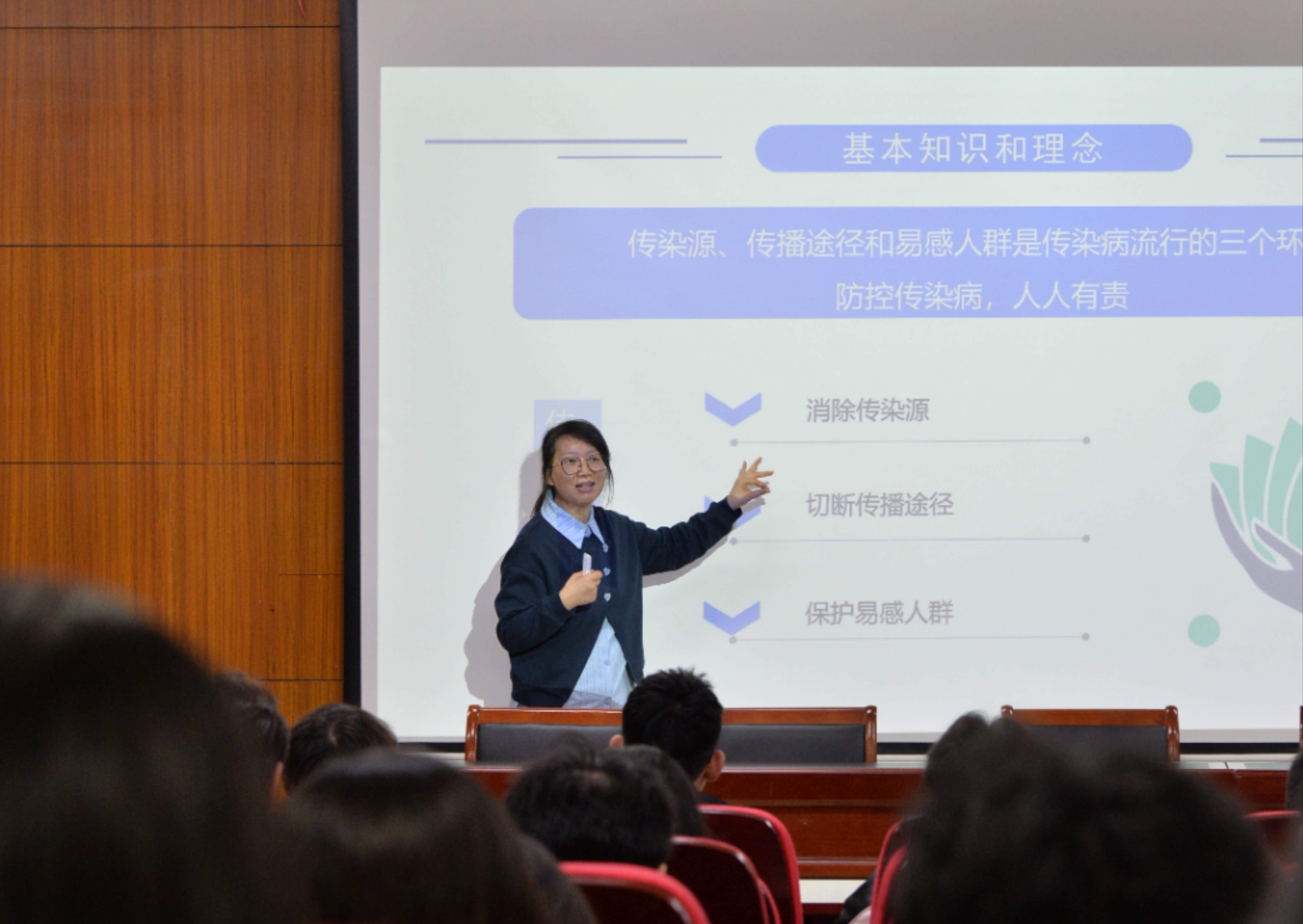 陈玉娟医生围绕“中国公民健康素养”这一概念,以问答互动形式向同学们深入解读健康素养的内容和意义。她强调,每个人都是自己健康的第一责任人,各位同学要树立对自己健康负责的理念,践行文明健康生活方式,自觉维护和促进自身健康。