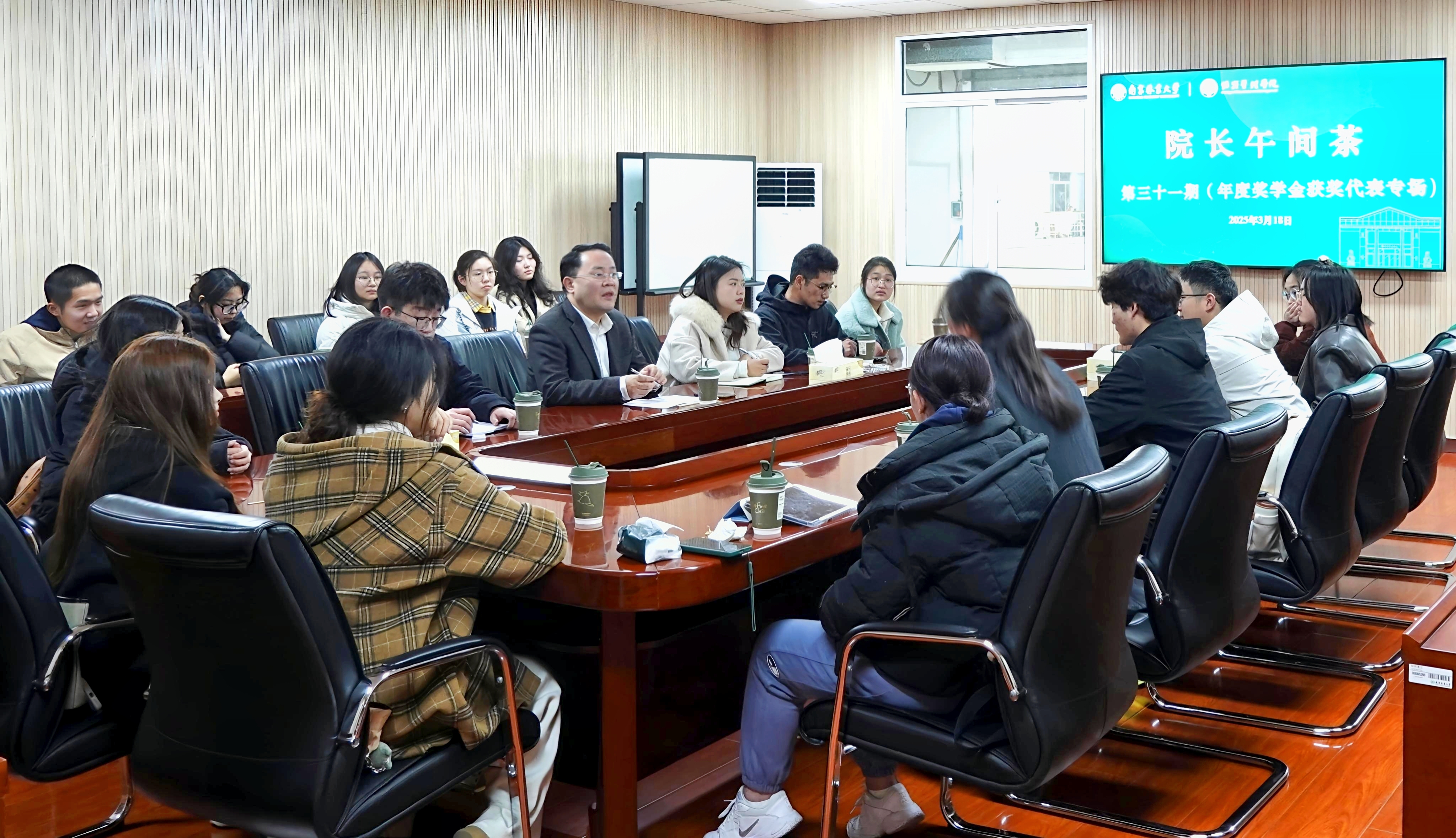 3月18日中午,第三十一期“院长午间茶”(高额奖学金学生专场)活动在文科楼C208成功举行。经济管理学院院长杨红强与学院23-24学年高额奖学金学生代表进行亲切交流。学院团委书记兼学工办主任赵淑颖、辅导员徐畅参加活动。本次活动由赵淑颖主持。