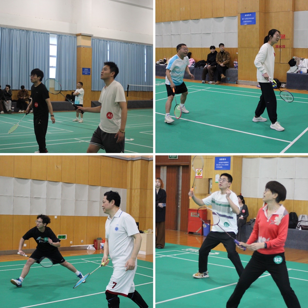 比赛伊始,总裁判、学院工会主席谢煜宣读了比赛规则。本次比赛只设双打项目,每对选手分别由一位老师和一位研究生组成。比赛第一阶段采取小组循环赛的模式,先获得21分的一方积一分,负者不积分;20平后,领先2分的一方胜;29平后,先获得30分的一方胜。第二阶段为淘汰赛,每组积分前两名的队伍进行交叉淘汰赛,决出前四名。