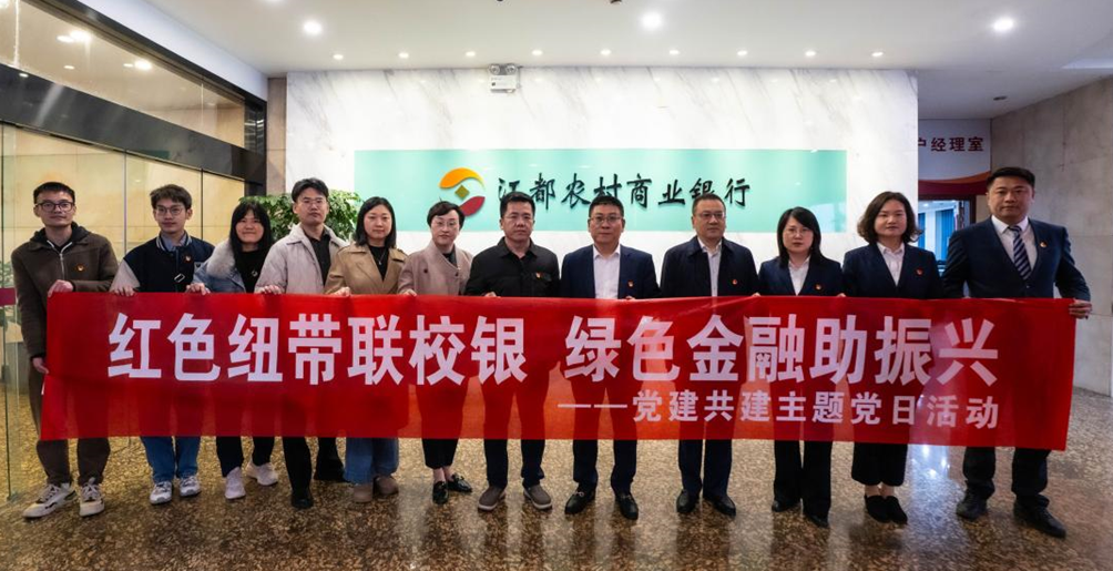 为进一步深化校银合作内涵,推动党建与业务融合发展。2025年3月28日,南京林业大学经济管理学院应用经济学系党支部与江都农村商业银行机关第一党支部开展“红色纽带联校银 绿色金融助振兴”党建共建活动。江都农村商业银行党委书记、董事长尚修国,副书记、行长闻进军,党委委员、副行长任艳,南京林业大学经济管理学院党委委员、副院长杨爱军,应用经济学系党支部书记姚萍、系主任王梅玲等共同参加活动。活动由江都农村商业银行机关一支部书记周江安主持。