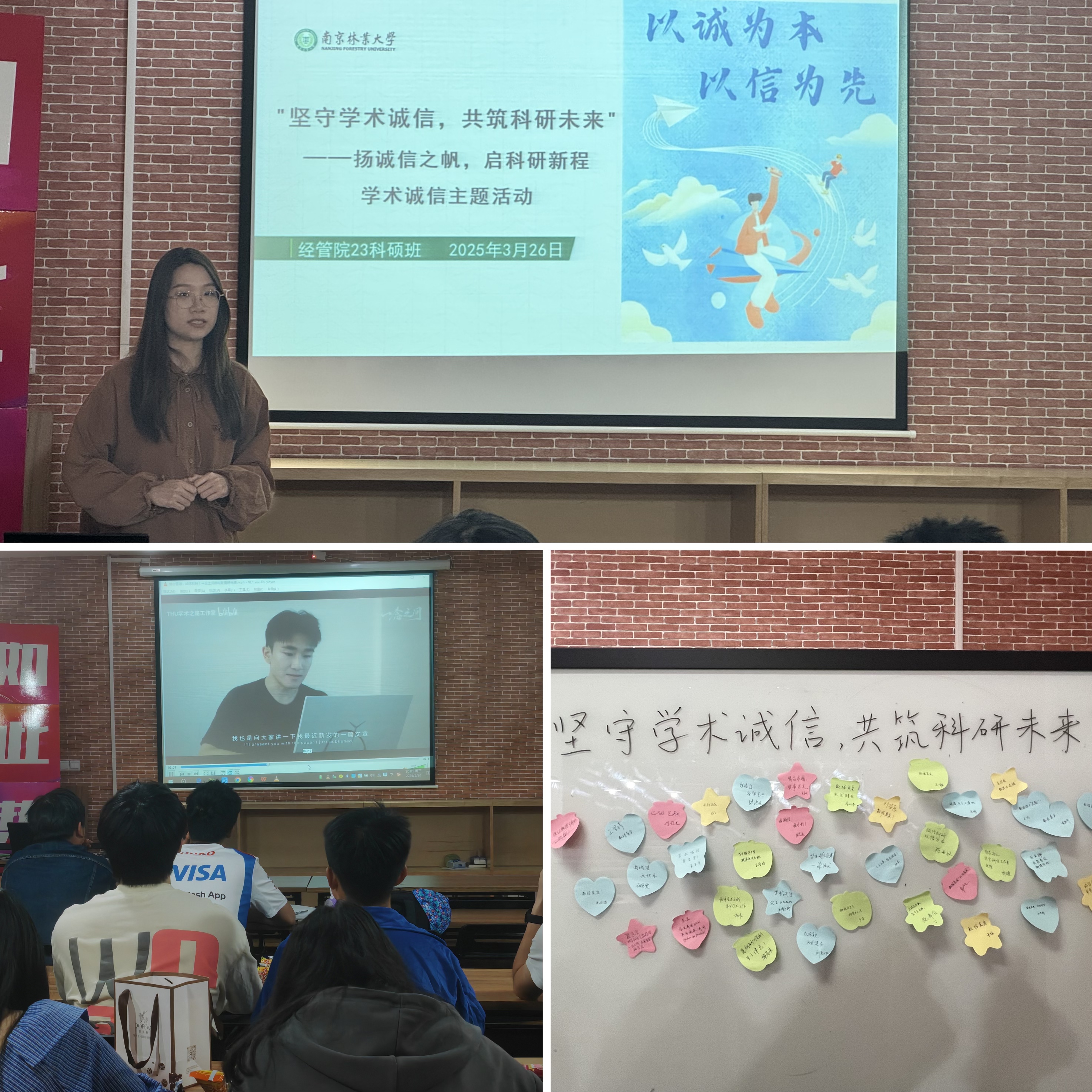 3月26日,学院在文科楼B142开展“观影思‘诚’,竞答践‘信’”活动。全体同学首先集体观看了学术诚信微电影,影片通过真实案例揭示了一系列学术不端行为及其严重后果,帮助同学们明辨学术是非,培养诚信意识。观影结束后,同学们围绕学术诚信基本概念、学术论文引用规范等内容展开知识竞答,进一步丰富学术诚信知识储备。活动结束前,同学们在诚信签名墙上签下自己的名字,许下“坚守科研诚信,恪守学术规范”的承诺。