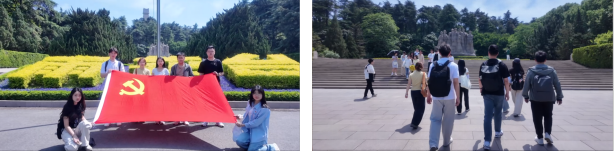 研学第一站,小组全体成员来到雨花台森林公园。公园中森林郁郁葱葱,鸟语花香,吸引众多游客休闲漫步。广场上矗立的烈士群雕,象征着无数为新中国建设英勇牺牲的革命先烈。小组成员在烈士群雕前进行了瞻仰和默哀;在公园内结合自身专业知识,对森林碳汇和生态文明建设情况进行了实地调研。研学过程中,同学们不禁深思,若没有先烈们的牺牲,如今这般美好的生态环境是否还能存在?“绿水青山就是金山银山”的生态文明建设理念也是对“全心全意为人民服务”党的根本宗旨的体现?