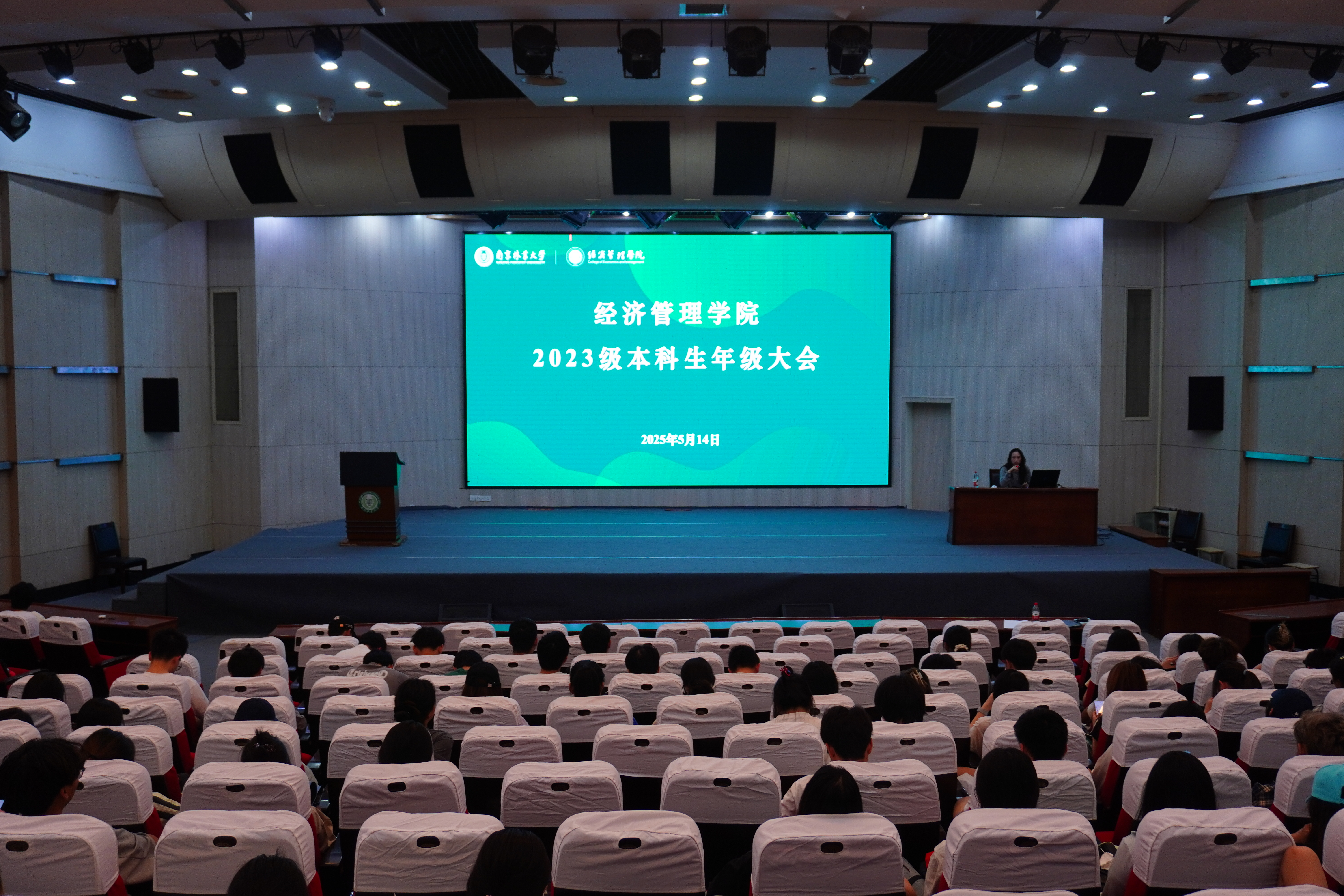 5月14日下午,经济管理学院2023级本科生年级大会在教五楼报告厅召开,会议由年级辅导员王蔚然主持,全体2023级本科生参会。本次会议以“明方向、守底线、谋未来”为主题,围绕学业规划、安全教育与生涯发展三大核心内容展开,旨在帮助同学们明晰学业要求、筑牢安全防线、规划未来航向。