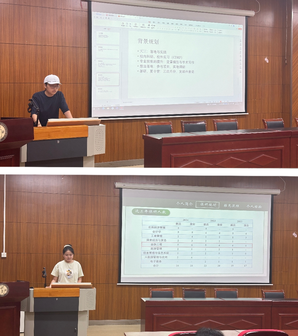 为发挥榜样引领作用,搭建经验传承桥梁,5月21日中午,学院学生会学习实践部在文科楼C105举办了榜样经验分享会。活动特邀2025届毕业生张舒琳和沈冰担任主讲嘉宾,围绕保研与留学两大主题,以“案例+方法论”形式倾囊相授。张舒琳结合自身经历,从保研规划、推免流程及个人经验三个维度,对保研政策进行了深入细致的解读;沈冰则分年级、分阶段系统阐述了留学前需完成的各项准备工作。参会学生纷纷表示,分享会为个人学业发展提供了清晰的“行动路线图”。