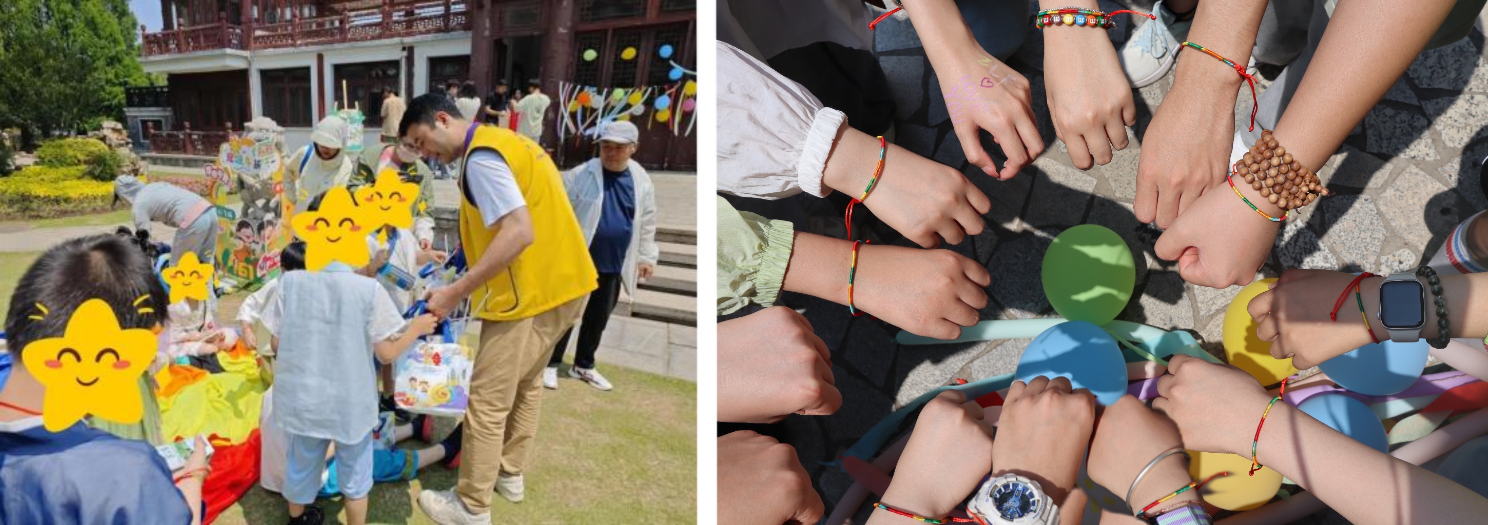 活动尾声,主办方为每位参与活动的“星星的孩子”送上了精心挑选的节日礼物。大家还互相系上了象征祈福纳吉的端午五彩绳,一根根丝线缠绕手腕,编织出彼此间真挚的情谊与美好的祝愿,现场暖意融融。