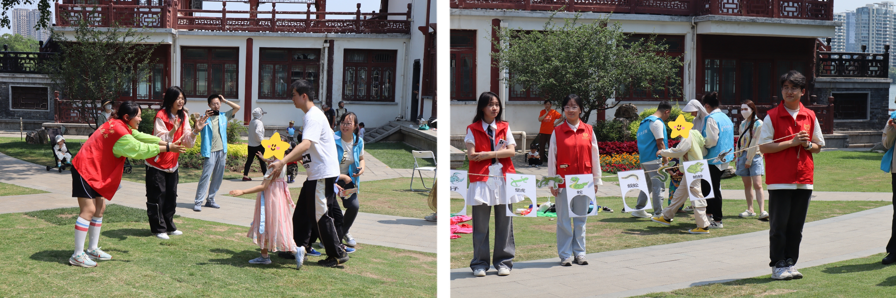 表演结束后,趣味盎然的互动游戏将现场气氛推向新的高潮。在“龙舟竞速”游戏中,孩子们在志愿者引导下分组协作,齐心协力“划动”象征团结的龙舟,在你追我赶间体验协作的力量。随后的“射五毒”传统游戏,孩子们小手握起特制小球,专注地瞄准目标,在互动中感受驱邪祈福的文化寓意,欢声笑语回荡在公园上空。