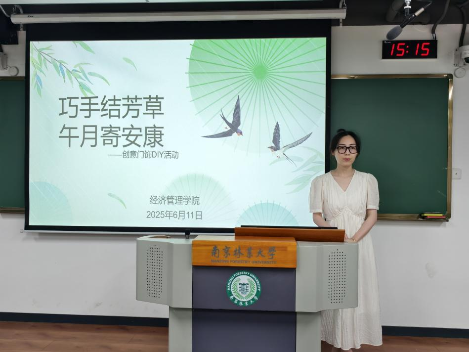 为弘扬中华优秀传统文化,营造清雅宿舍氛围,疏解学子身心压力,经济管理学院生活权益中心联合心理健康协会于6月11日下午在白马校区举办“巧手结芳草,午月寄安康”创意门饰DIY活动。活动由生活权益中心指导老师刘思静担任主讲。