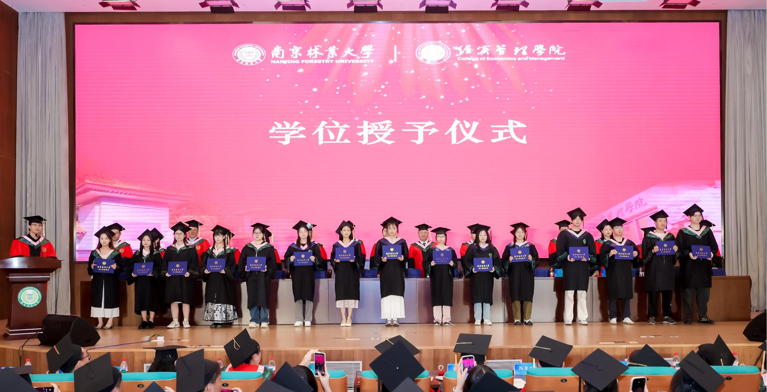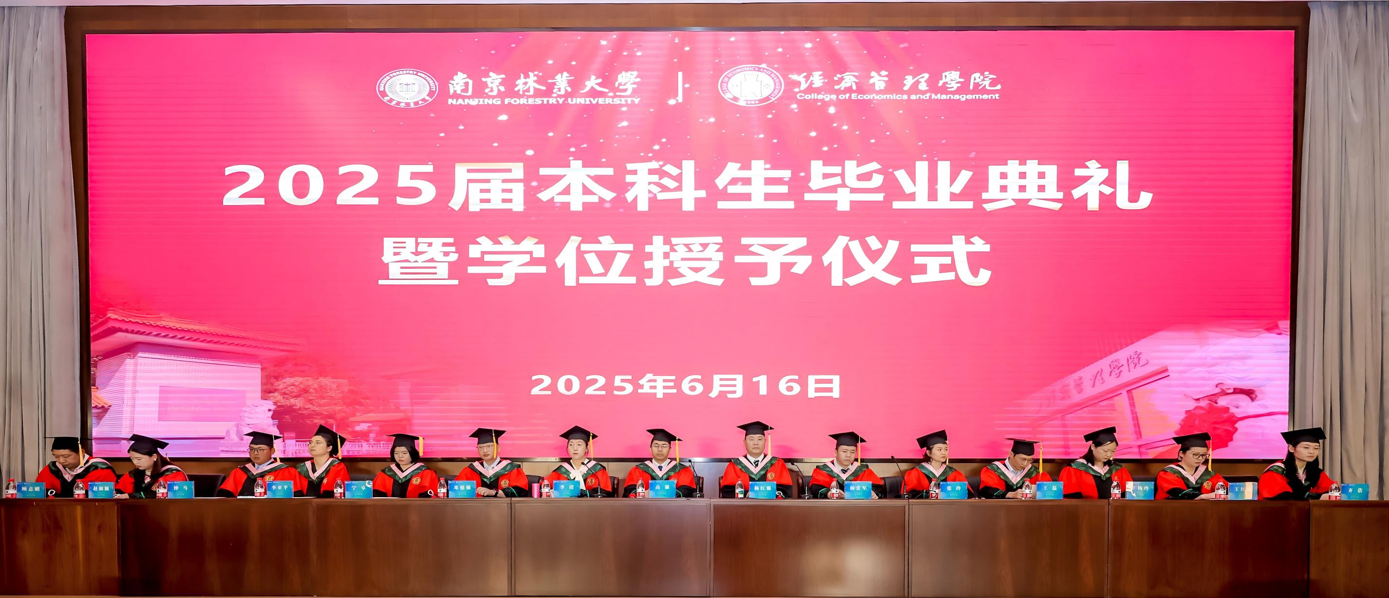 6月16日,南京林业大学经济管理学院2025届本科生毕业典礼暨学位授予仪式在新图书馆举行。经济管理学院党委书记高强,院长杨红强,党委副书记、副院长李倩,副院长杨爱军,副院长邓德强,副院长张玲,各系(室、中心)负责人,各年级辅导员,毕业班班主任,2025届全体本科毕业生及家长代表出席本次典礼。仪式由学院党委副书记、副院长李倩主持。