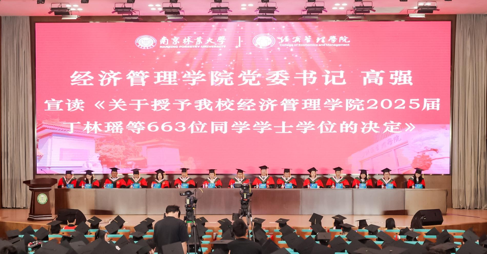 党委书记高强宣读了《关于授予我校经济管理学院2025届丁林瑶等663位同学学士学位的决定》。