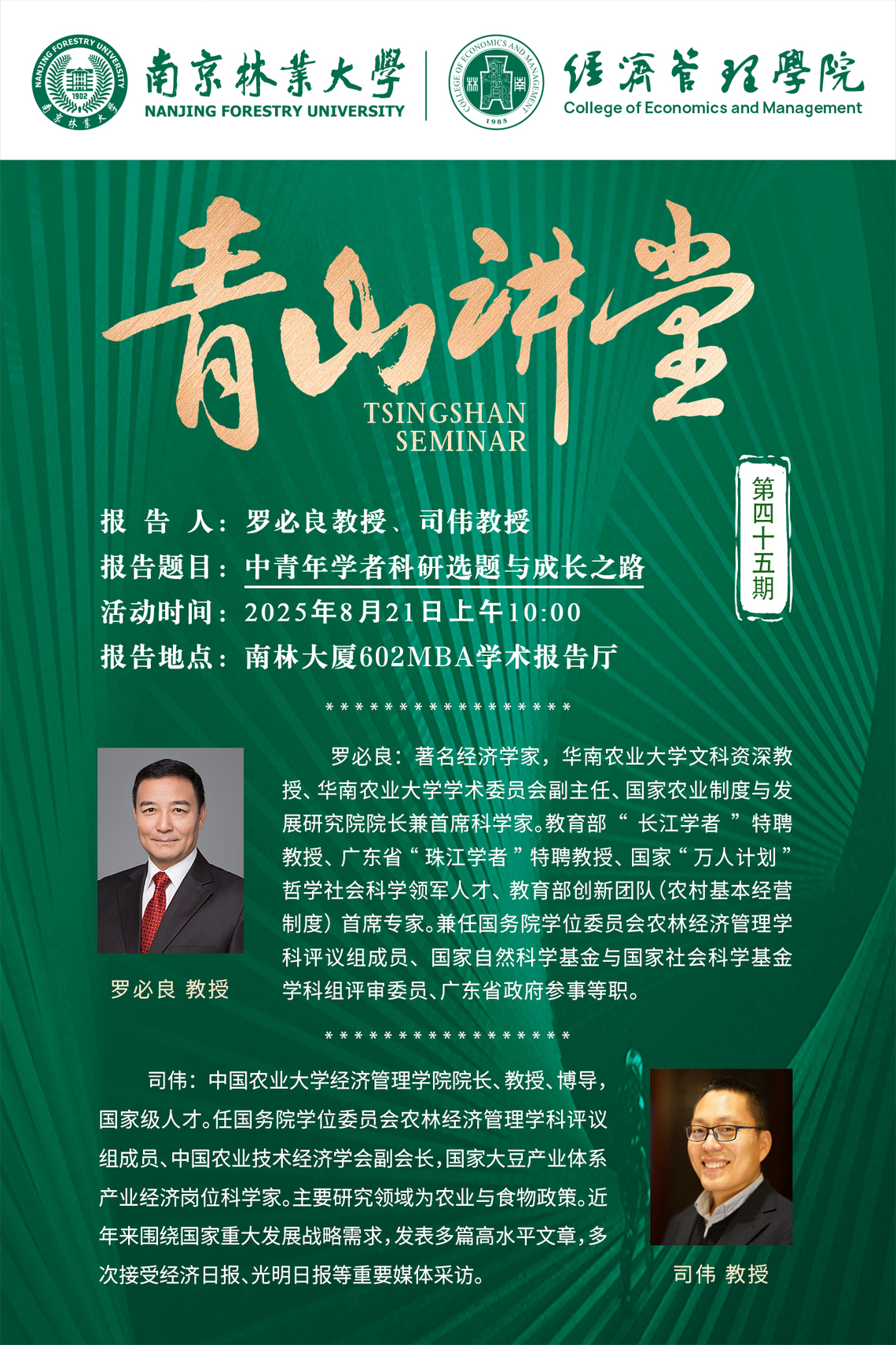 青山讲堂第四十五期:罗必良(华南农业大学)、司伟(中国农业大学)