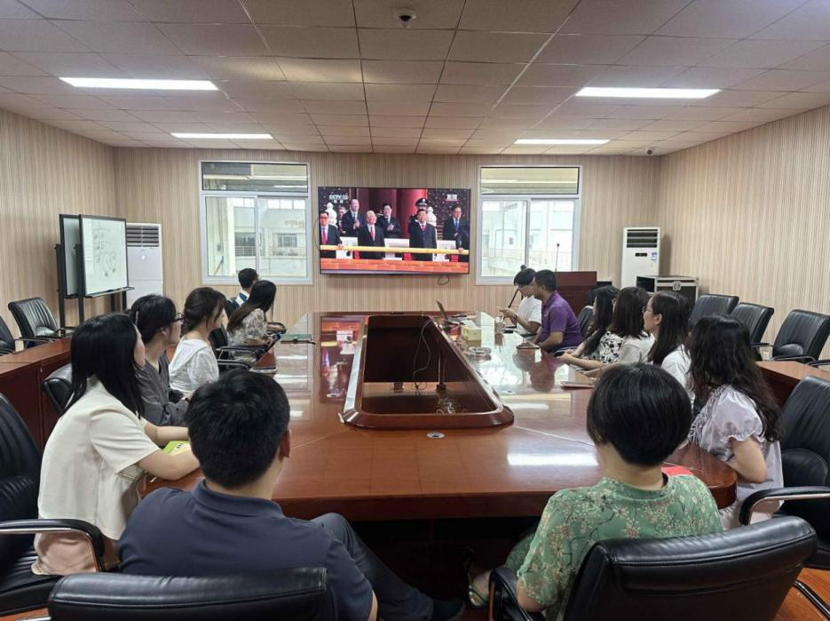 为深切缅怀革命先烈,弘扬伟大抗战精神,激发广大师生的爱国热情和奋斗之志,学院党委通过集体观看、个人收看等多种形式,组织师生收看纪念中国人民抗日战争暨世界反法西斯战争胜利80周年大会直播,见证这一具有重要历史意义的时刻。全院1220余名学生师生教师在教室、会议室集中观看大会直播,深刻体悟大会精神,凝聚澎湃奋进力量。