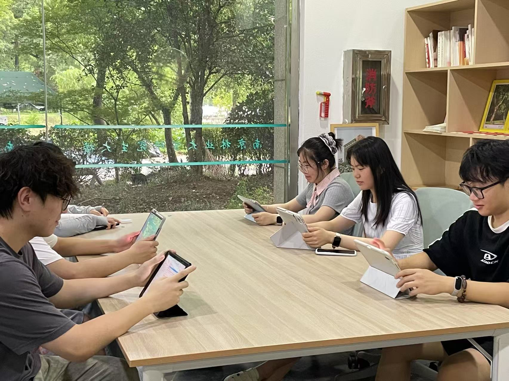 活动前期,师生通过每日打卡、章节批注、手账记录等方式开展深度阅读。8月11日下午,线下读书沙龙在研究生大楼钢琴角举行。同学们结合各自专业背景,围绕“生物多样性保护”“可持续发展实践”等话题展开交流。农林经济管理专业的王楷翔同学说道,“这两部著作重塑了我的生态认知——环境保护不仅是技术课题,更是文明自觉的体现。”会计专业的毛芸同学分享了阅读手账,并说道,“卡森笔下的环境警醒与哈斯凯尔描绘的微观生态引发了我的共鸣,我们要学会获得大自然赐予的美好礼物——因为和自然好好相处,是人类永恒的必修课。”生活权益中心指导老师刘思静表示:“生态文明建设关乎民族永续发展。期待同学们以此次绿色阅读为契机,将生态文明的种子深植心田,把绿色发展理念融入生活日常,从节约一张纸、一度电做起,用实际行动争做美丽中国的绿色建设者、低碳生活的践行者、生态文明的传播者。”