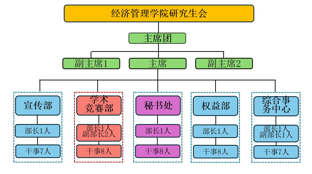 为全面提升服务效能与内部运行效率,学院研究生会秉持规范化、透明化、公正化的管理原则,积极推进“三部一处一中心”的一体化管理模式,明确部门职能,细化工作要求,上一学年共计召开16次工作例会,有效地提升了组织的整体规范性。在运行机制方面,学院研究生会通过优化研究生代表大会及换届选举流程、组建跨部门协作小组,进一步激发了组织内生动力,为各项工作在稳定架构下的有序衔接与高效运转提供了保障。在制度建设方面,学院研究生会严格遵循学校相关规定,修订完善《南京林业大学经济管理学院研究生会管理制度》(2025版)与《经济管理学院研究生会职务分评定细则》(2025版),开展过程性评估,推动组织效能与个人能力双提升。