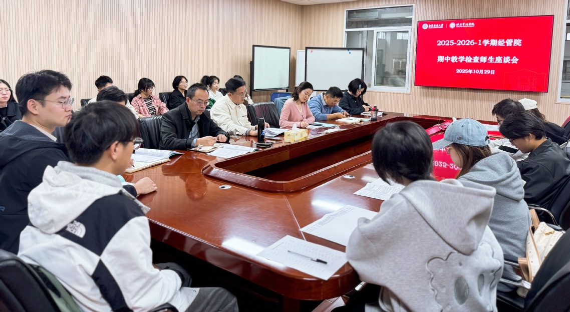 为夯实本科教学质量,切实提升课堂教学效果,促进学生学业进步,10月29日下午,经济管理学院在C208会议室组织召开2025-2026学年第一学期本科期中教学检查师生座谈会。