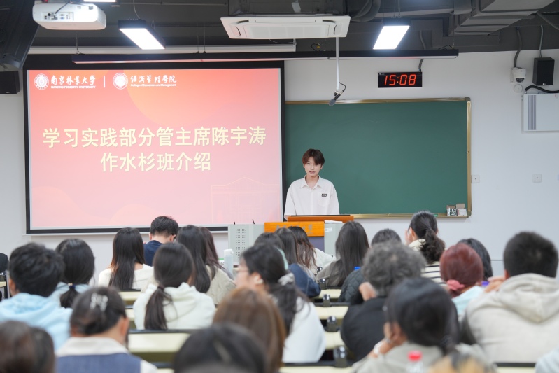 10月31日下午,南京林业大学经济管理学院水杉英才初级班开班仪式暨开班第一讲在白马校区3312教室举行。经济管理学院团委书记兼学工办主任赵淑颖、25级辅导员徐畅、23级淮安辅导员陈颖以及2025级水杉英才初级班100余名新成员共同参加本次活动。
