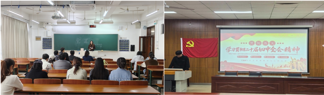 11月6日至16日,各师生党支部立足专业特色与工作实际,通过落实“第一议题”制度,组织党员大会、“支部书记讲党课”、主题党日开展专题学习。采用原文研读、心得交流、案例分析、观看视频、知识问答等丰富多样的学习形式,推动理论与实践深度融合,层层递进强化学习成效。其中,农林经济系党支部组织全体教师党员研读《中共中央关于制定国民经济和社会发展第十五个五年规划的建议》原文,并由支部书记领学全会公报,重点结合乡村振兴与立德树人等业务工作,分析交流在教学科研工作中贯彻全会精神的重要举措;学生农林经济管理党支部结合专业所学,深入研讨《中共中央关于制定国民经济和社会发展第十五个五年规划的建议》中关于乡村振兴有关内容,并融合专业实习与主题党日强化理论实践,推动学习入脑入心;学生管理科学与工程党支部以“专题讲解+原文精读+知识问答”为主线,深入学习全会精神,并系统梳理规划目标与实践路径,明晰奋进方向。