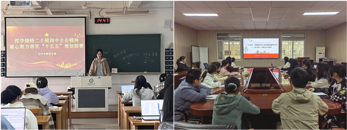 2025年10月20日至23日,党的二十届四中全会在北京举行,审议通过了《中共中央关于制定国民经济和社会发展第十五个五年计划的建议》,为未来五年中国发展擘画蓝图。经济管理学院党委高度重视学习贯彻党的二十届四中全会精神,11月5日至16日,学院党委组织全体师生党员开展了专题学习,引导广大党员准确把握“十五五”时期经济社会发展的战略部署,自觉把思想和行动统一到党中央决策部署上来。