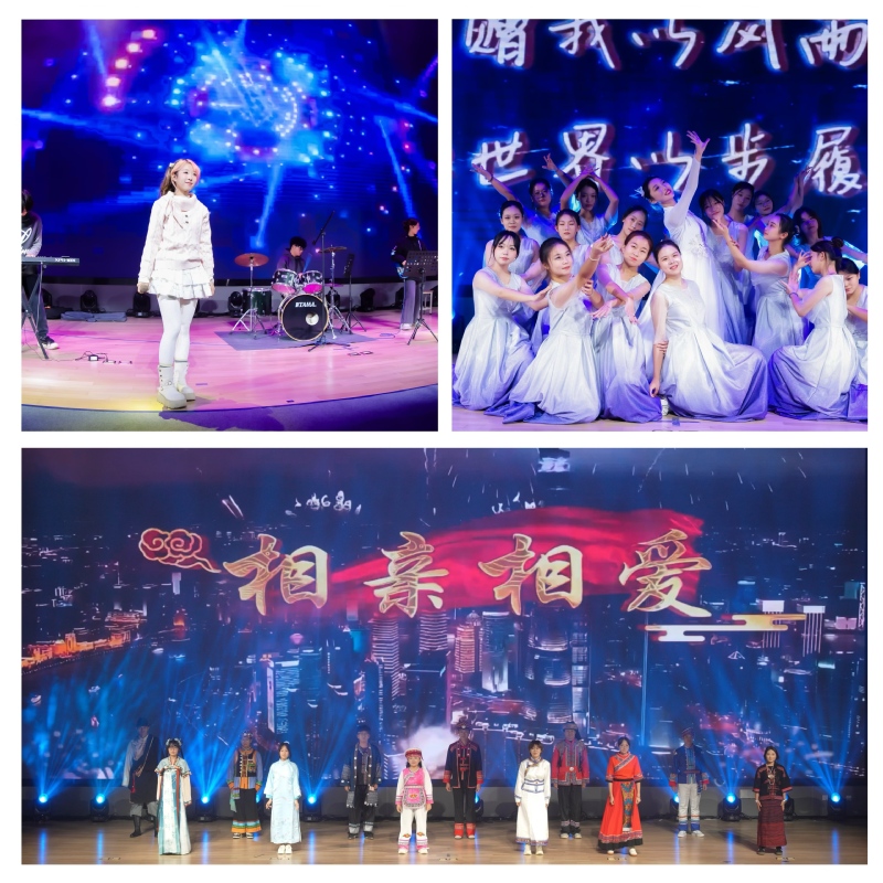 活动现场穿插了丰富多彩的表演,尽显青春多元风采。小推车乐队以《晴天》《你要跳舞吗》拉开晚会序幕,温柔的旋律与跃动的节奏交织,瞬间点燃全场热情;第二届南京林业大学手语操大赛一等奖团队深情演绎《世界赠予我的》,于无声中勾勒岁月经纬,在指尖流转间体察生命丰盈,引领观众完成一场与内心的温柔对话。终章时刻,来自十二个民族的新生代表踏风登台,以一场走秀齐舞《相亲相爱》将晚会推向高潮,古老的民族纹样与现代的时尚步伐交相辉映,生动诠释了“中华民族一家亲”的深厚情谊,也为这个美好的夜晚画下温暖的句点。