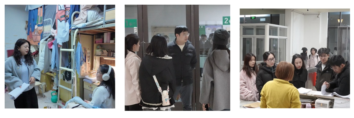 在同学们自主整改的基础上,11月28日,学院辅导员、宿管深入学生宿舍走访检查。检查过程中,辅导员重点排查违章电器、杂物堆放等安全隐患,宿管阿姨则结合日常管理经验,查看阳台、卫生间等卫生死角,并现场指导学生合理收纳物品、保持通风。辅导员同步开展了消防安全与传染病防控科普宣传,进一步增强学生的安全意识和自我管理能力。