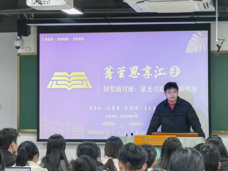11月26日晚,经管院资助服务中心在白马校区3310教室举办了第22期菁管思享汇。本次分享以“星光引路,青春筑梦”为主题,邀请四位国家奖学金获得者讲述他们的大学学习生活经验,帮助新生更好地适应大学节奏、找准发展方向。