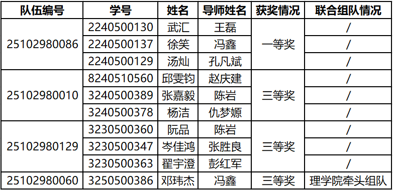 附:2025年经济管理学院华为杯第二十二届中国研究生数学建模竞赛获奖名单