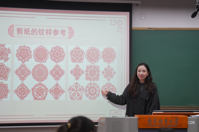 活动伊始,王蔚然为同学们开启了一段剪纸艺术的文化溯源。她介绍了剪纸艺术作为千年非遗的演变脉络与流派特点,解读了其承载的生活智慧与情感寄托。王蔚然还结合实例,阐述了剪纸在岁时节庆、人生礼俗中的广泛应用,并示范基础的构图与运剪技巧,引领同学们感受这方寸艺术中虚实相生、图必吉祥的美学意境。
