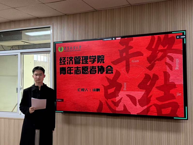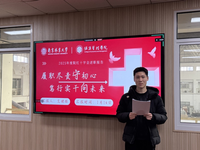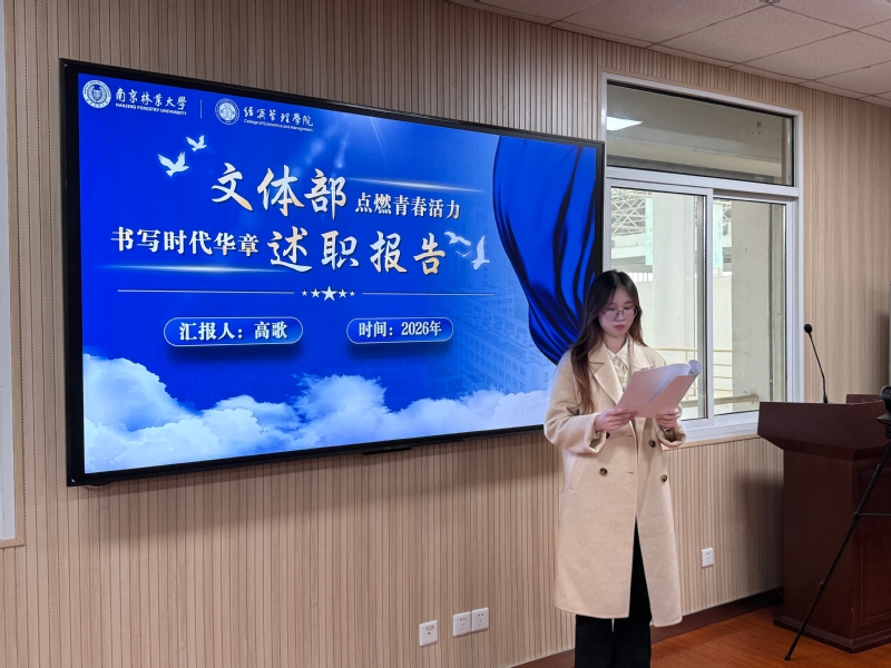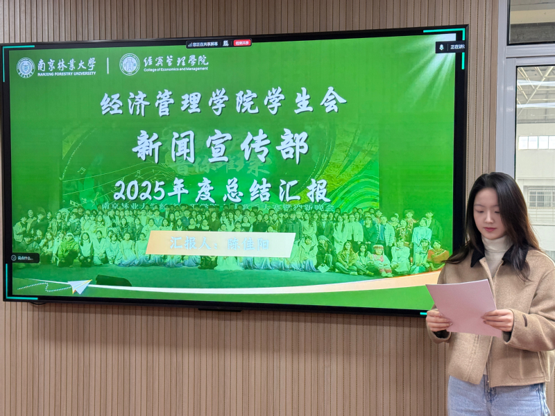 陈佳阳总结了学院媒体宣传工作的整体情况。部门全年依托“南林经管”“林苑经语”双平台发布稿件百余篇,及时传递学院动态与文化风貌;积极协助各部门大型活动进行宣传策划,有效提升了学院影响力。未来,部门将持续创新宣传形式,提升内容质量,进一步巩固学院宣传阵地。