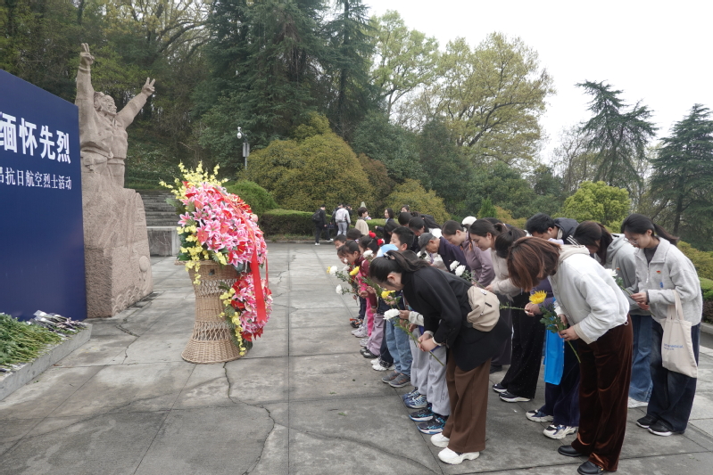 随后,全体人员前往抗日航空烈士纪念碑与航空烈士公墓,瞻仰庄严高耸的纪念碑,凝视镌刻着中外抗日航空烈士姓名的英烈碑。全体成员向烈士敬献鲜花,在肃穆庄重的氛围中,深切缅怀革命先烈为国家和民族作出的巨大牺牲,表达对英烈的崇高敬意与深切哀思。