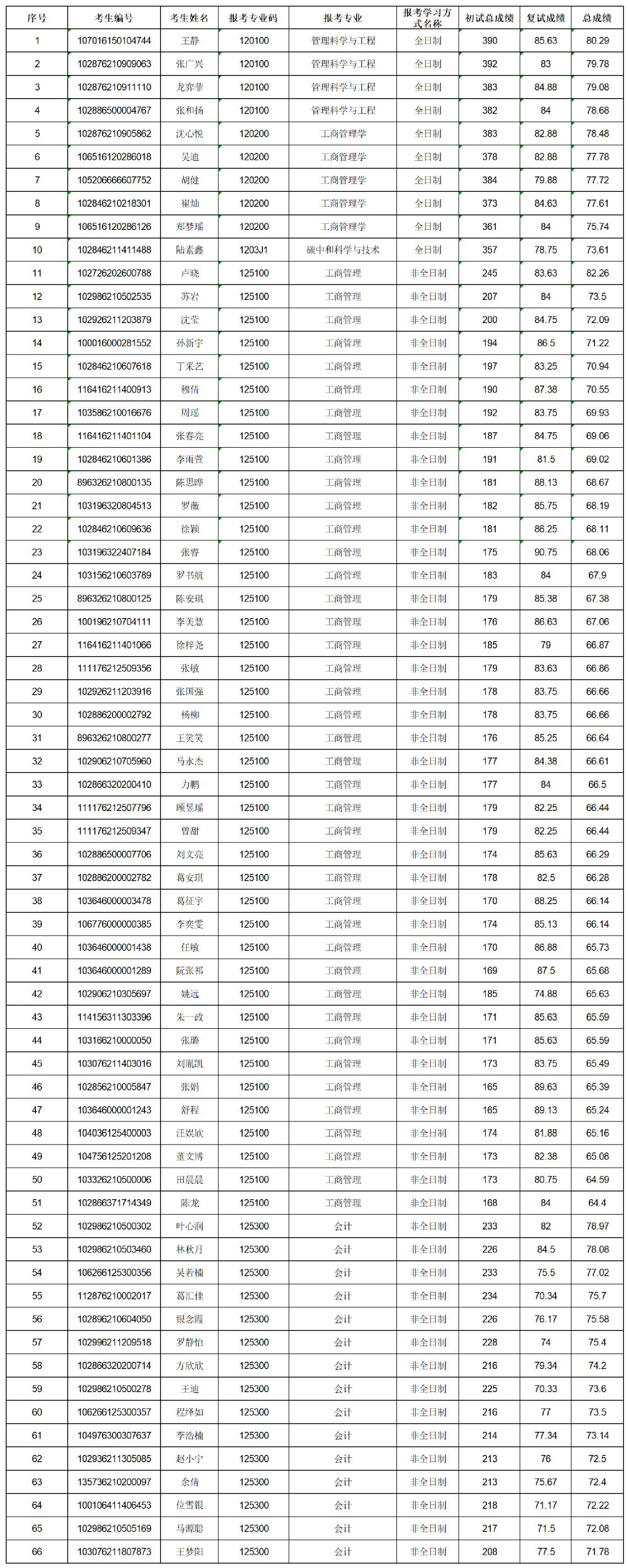 根据《2026年经济管理学院硕士研究生招生复试和录取工作实施办法》、《经济管理学院2026年学术型硕士研究生调剂公告》、《南京林业大学2026 MBA调剂公告》、《南京林业大学2026 MPAcc(非全日制)调剂公告》及相关文件精神,经过学院复试、初审,研究生院审核,确定2026年经济管理学院硕士研究生调剂拟录取名单,现将拟录取名单予以公示。
