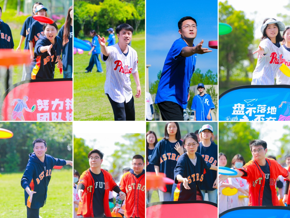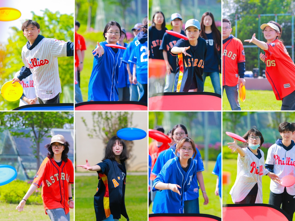 飞盘嘉年华环节将趣味与协作完美融合。飞盘九宫格、飞盘投篮、飞盘高尔夫、飞盘保龄球四项挑战依次展开,师生们刻苦练习、设计战术、众志成城,在一次次投掷与接力中展现细节把控力与团队向心力,欢声笑语与加油鼓劲交织回荡,充分彰显了PFUT团队积极向上、追求卓越的昂扬姿态。